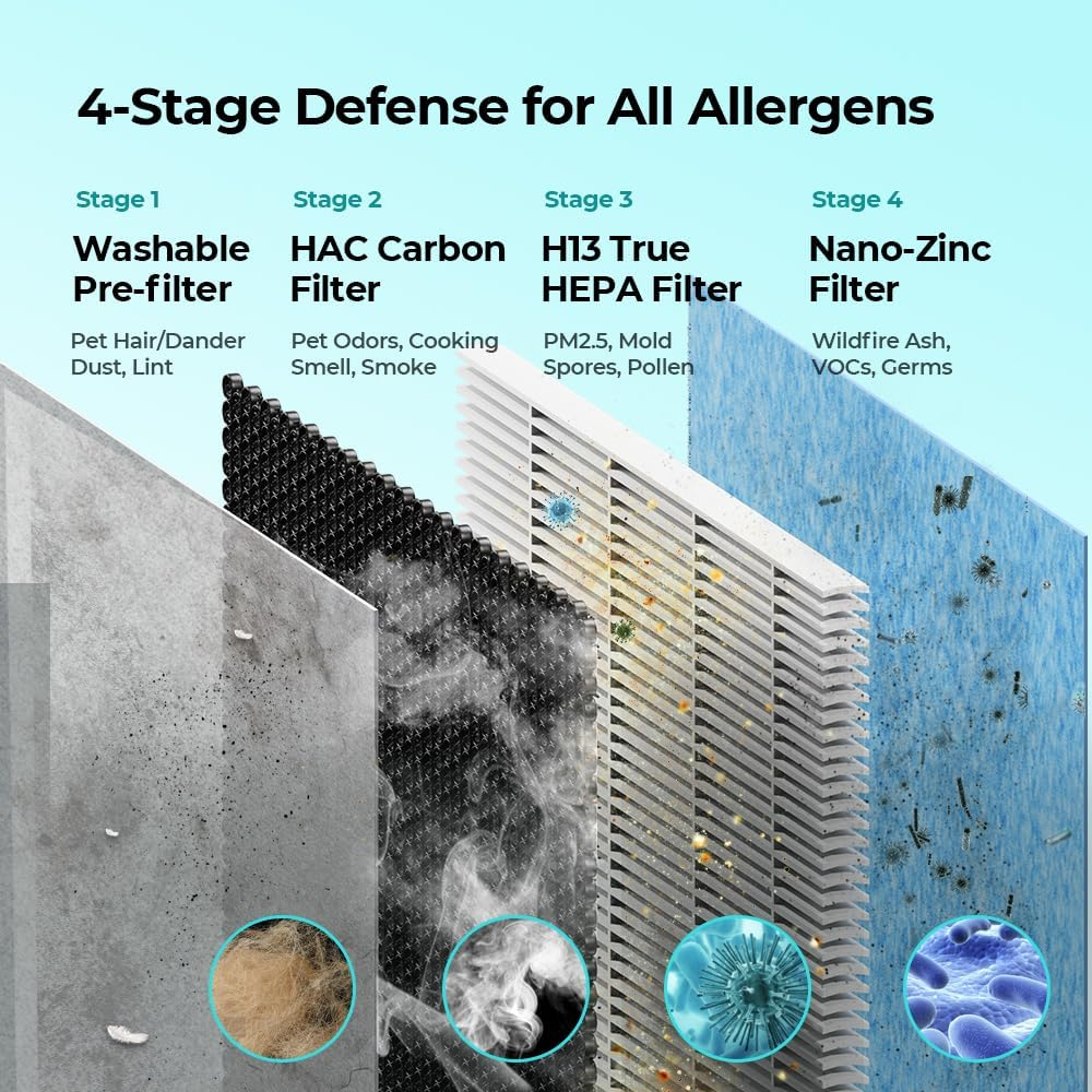 Smart Air Purifier for Large Rooms – H13 HEPA Filter, 99.97% Allergen Removal