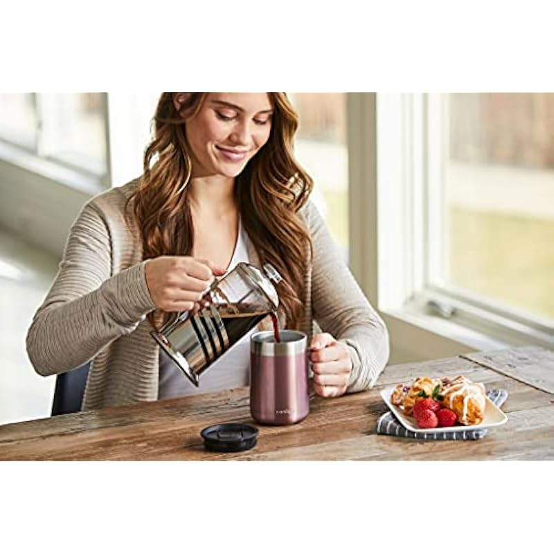 - Vacuum insulated stainless steel mug, keeps beverages hot for up to 5 hours & cold for up to 15 hours