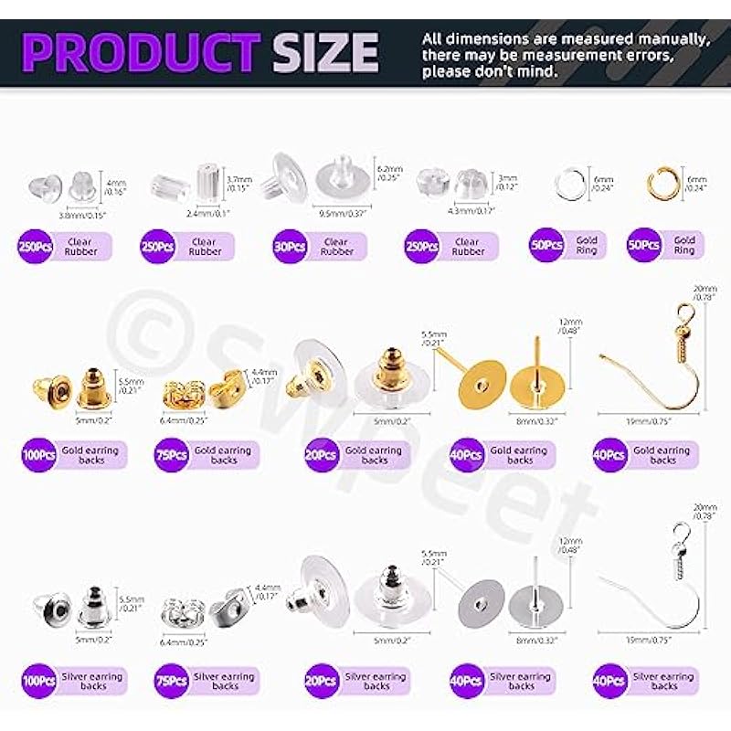 - 💎【Excellent Value】 Comes with 1170 pieces( 585pairs) defferent earring backs, 80pcs ear hook, 80pcs ear needle and 100pcs open loop, which are enough for your replacement, keep a long time use to replace your lost or torn one. It’s also enough to share with your friends who have earrings.