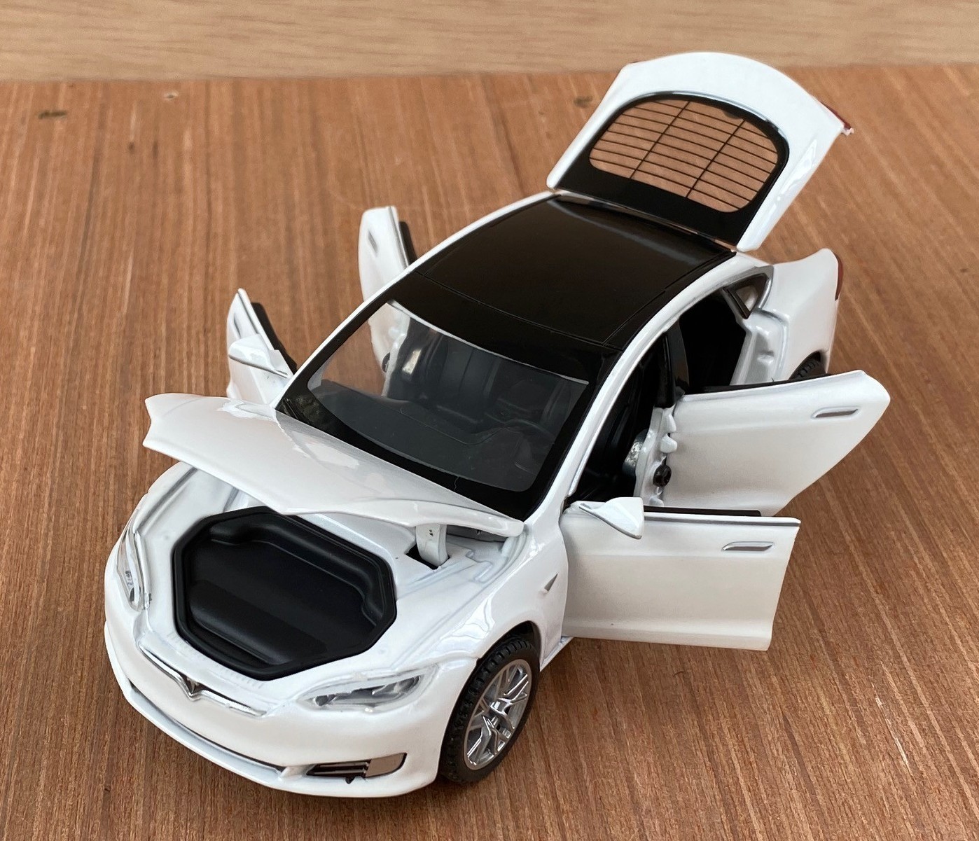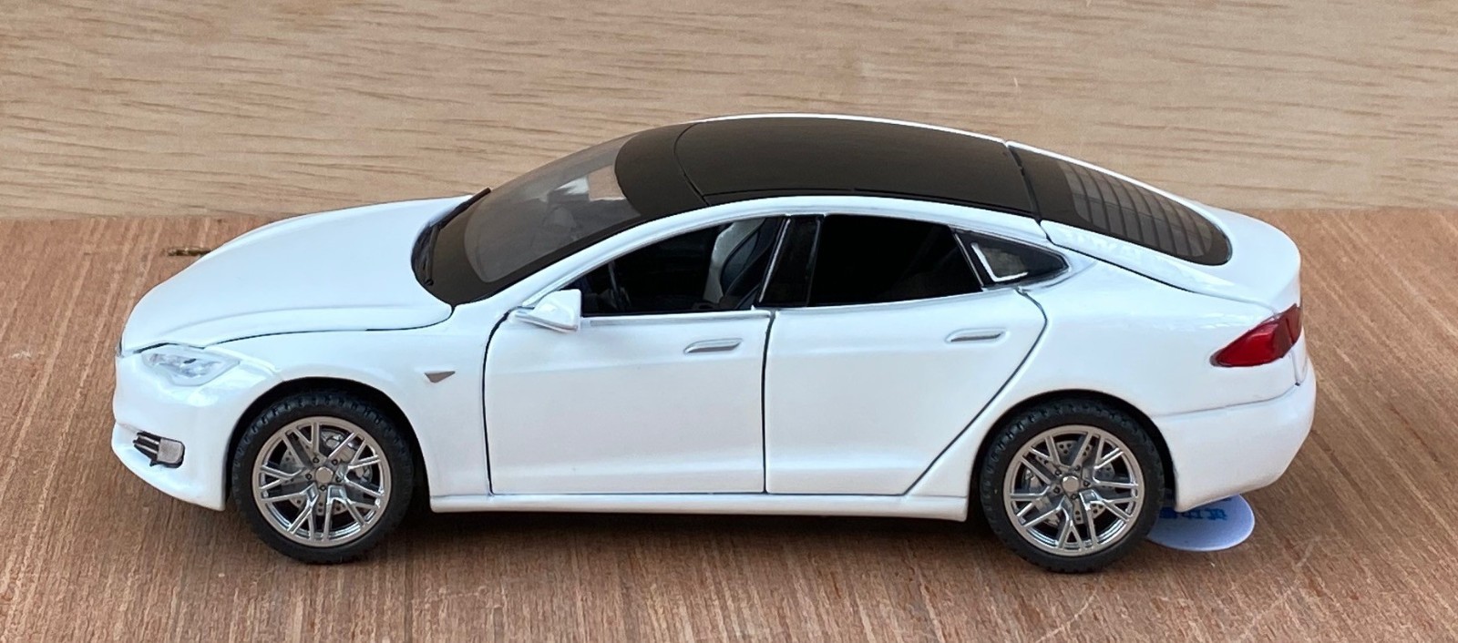 Telsla Model S (White). with Pull Back Electronic Toy with opening doors, lights