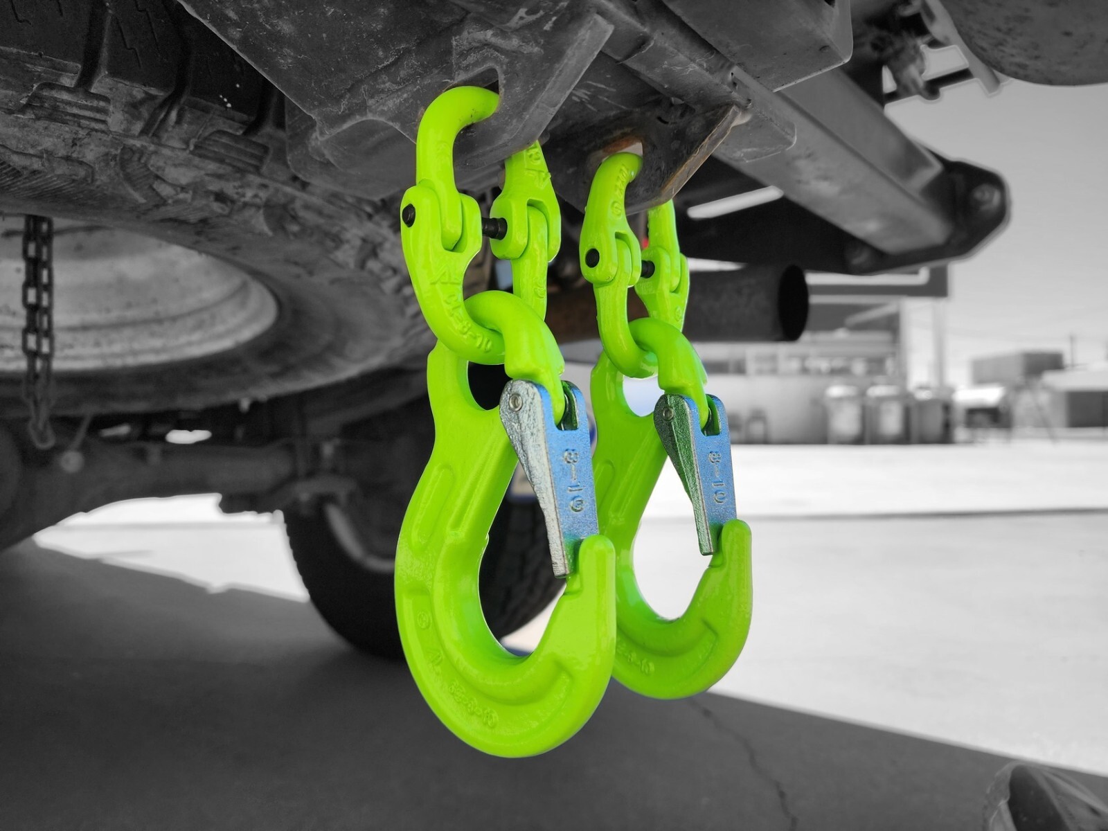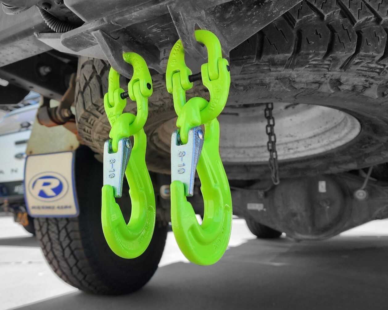 ‘THE ORIGINAL’ VEHICLE SAFETY CHAIN HOOK SET (SUPER H/DUTY) – 8MM – 5.0T GREEN