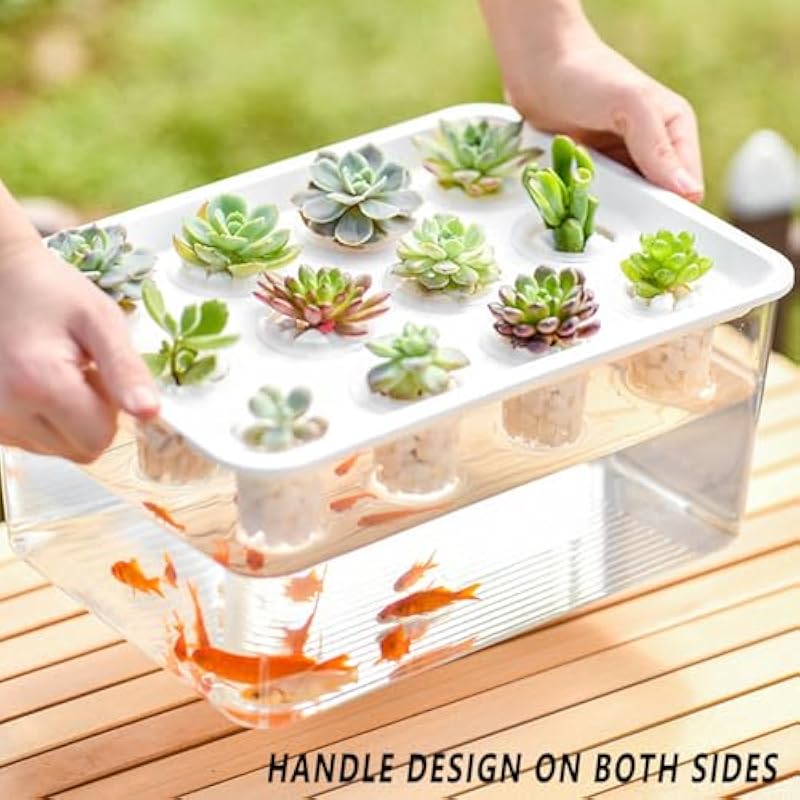 Transparent Plastic Rectangular Hydroponic Planter Box with Twelve-Hole Cover, Portable Micro Landscape Plant and Fish Tank, Ideal for Living Room Desktop Decoration, Durable Material
