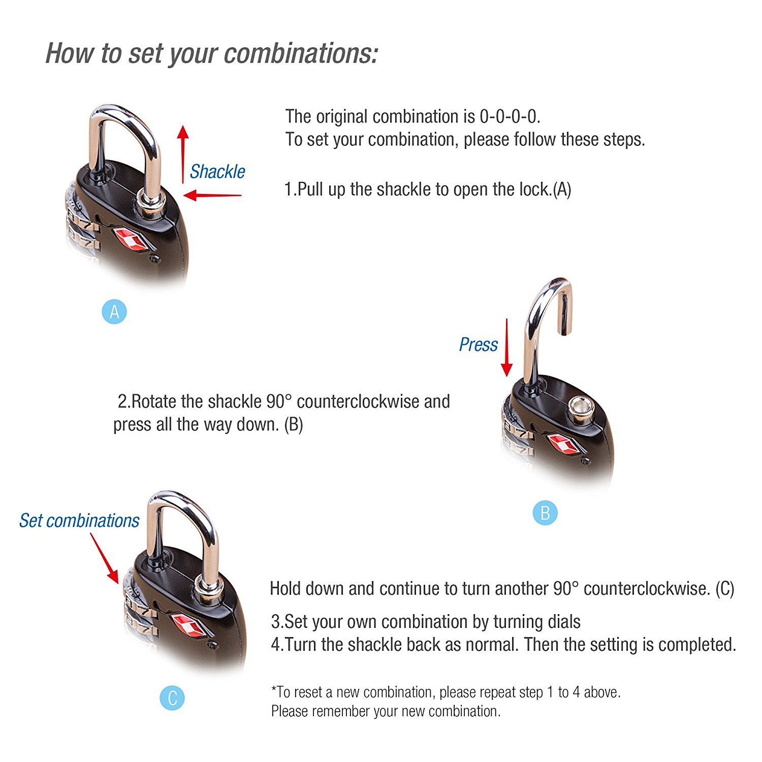 TSA Approved 4 Digit Combination Suitcase Luggage Security Padlock Travel Lock