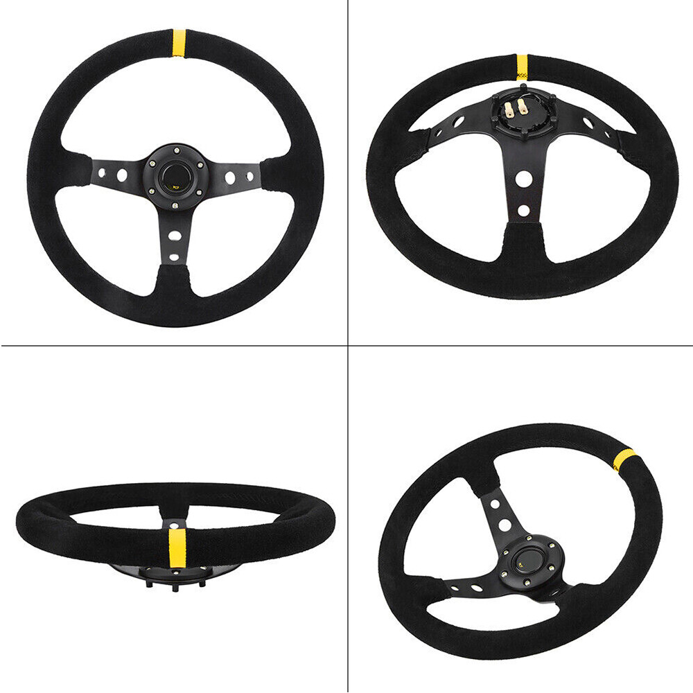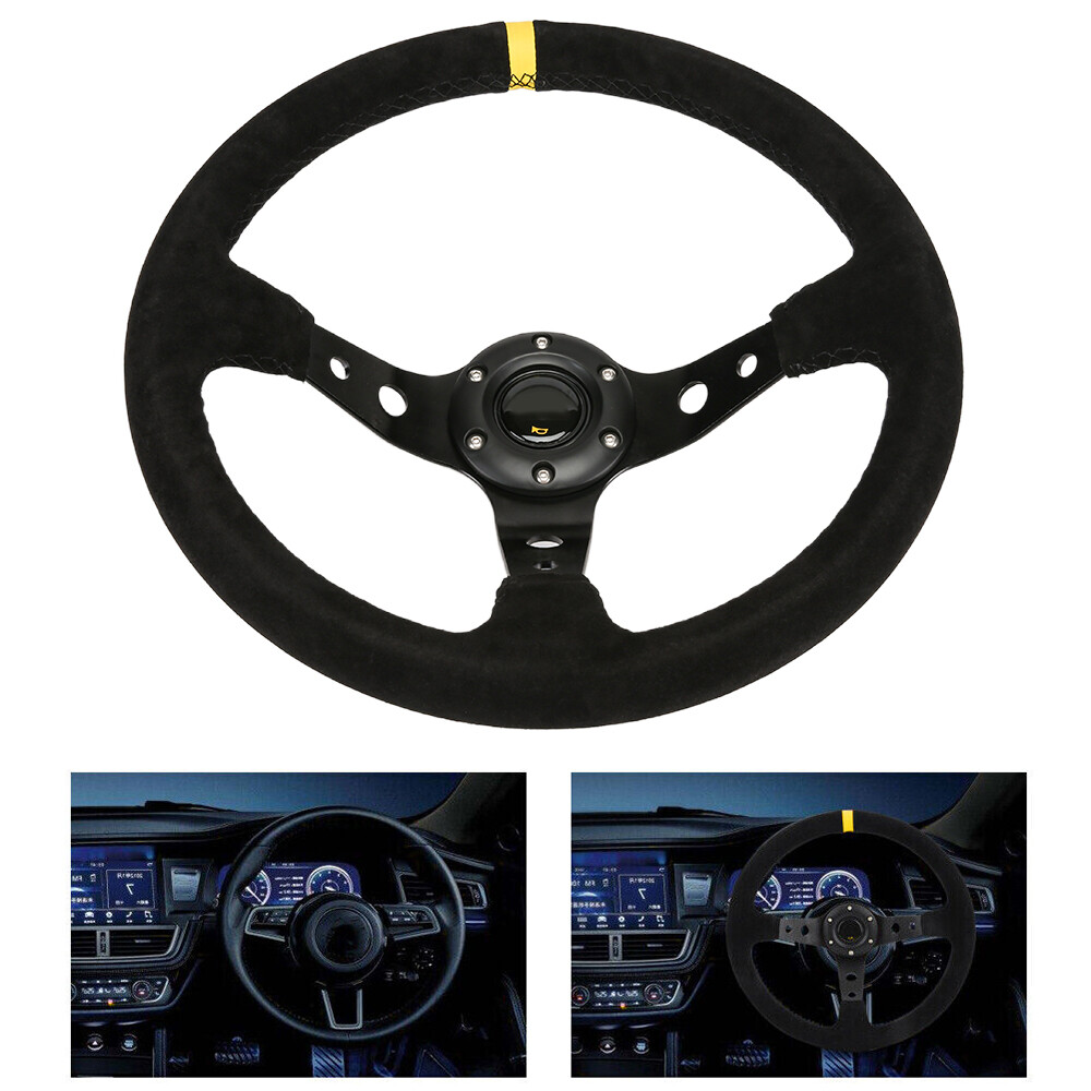 Universal 350mm 14inch Deep Dish 6 Bolt Suede Leather Car Racing Steering Wheel