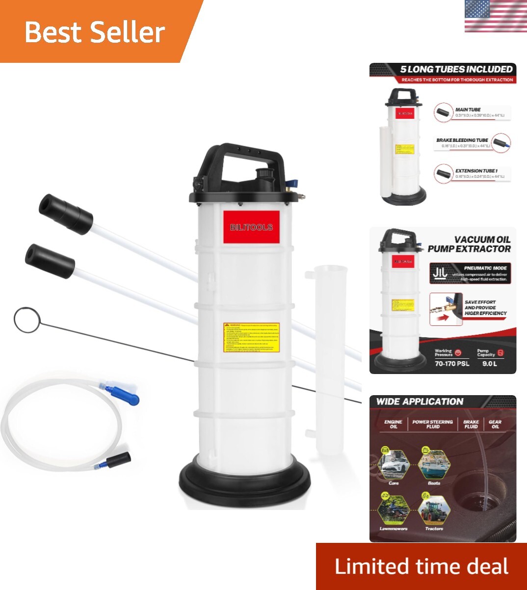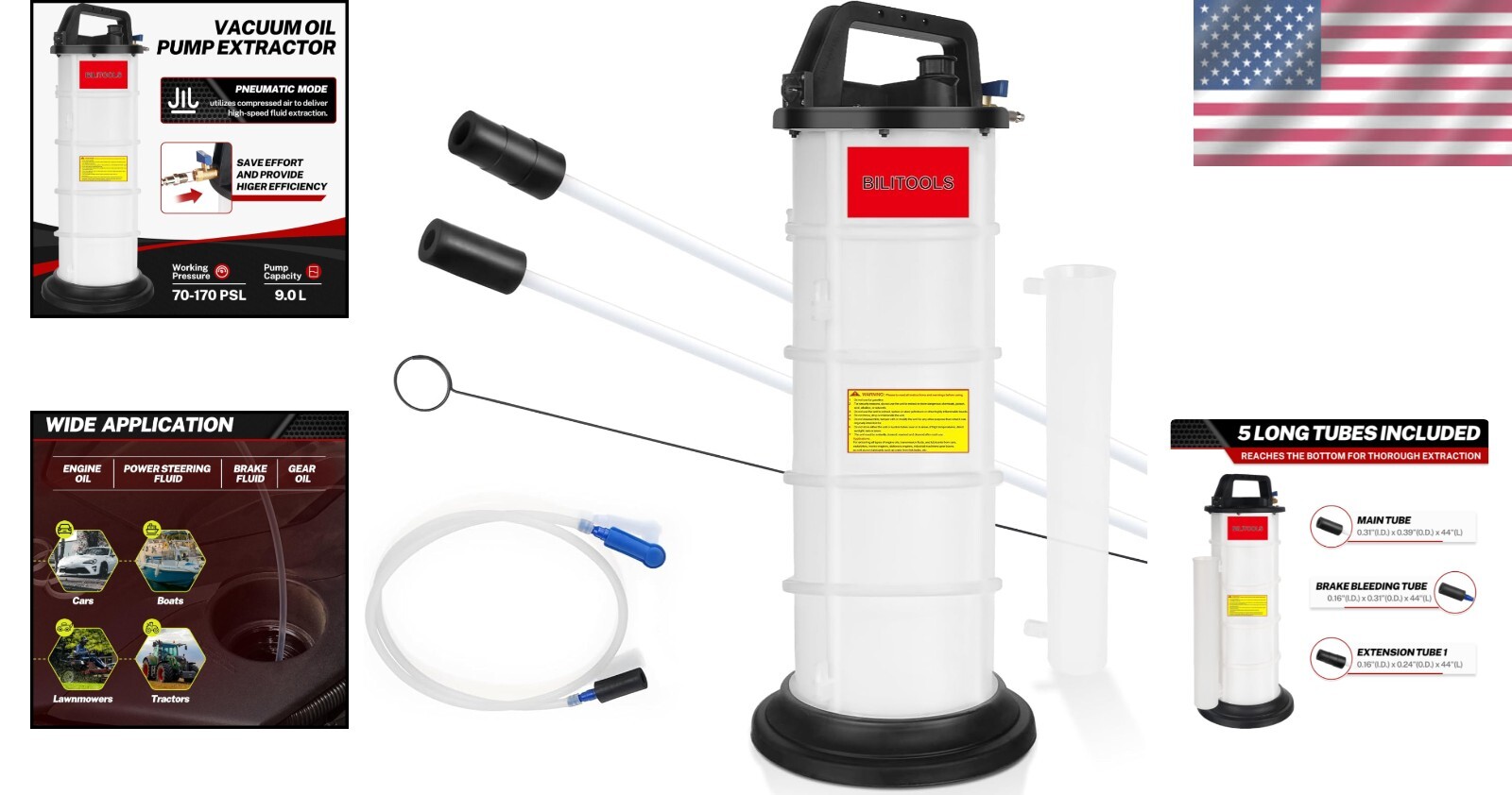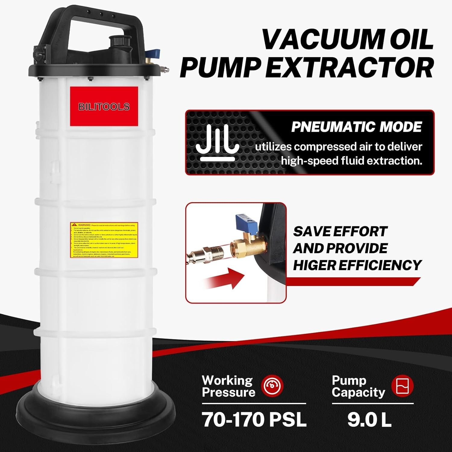 Vacuum Oil Pump Extractor 9L Capacity Pneumatic Automotive Marine Boat